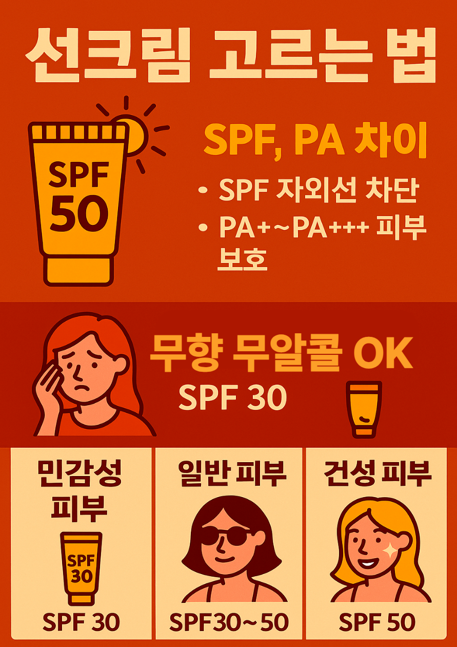 무턱대고 높은 수치만 고르기보다는 피부타입과 생활패턴에 맞게 선크림을 선택하는 것이 더 중요합니다. 선크림 하나만 잘 골라도 여름철 피부 스트레스를 줄일 수 있어요.